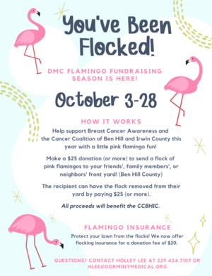 Dorminy Medical Center is raising money for the Cancer Coalition of Ben Hill and Irwin County (CCBHIC) during the month of October by “Flocking” yards…